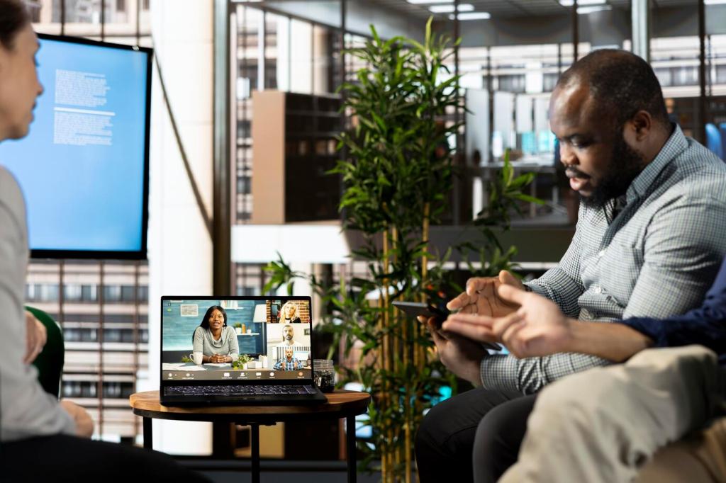 Die ersten Minuten legen den sozialen Ton. Ein kurzer, spielerischer Austausch aktiviert Aufmerksamkeit, reduziert Unsicherheit und öffnet Kameras und Mikrofone. Erzähle uns, welche Einstiegsfragen bei deinem Team sofort die Stimmung heben und warum.